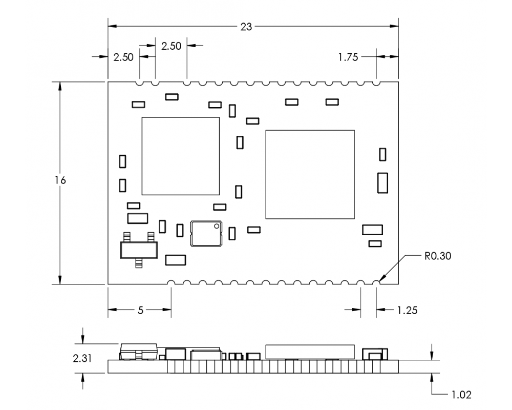 - Small footprint: ~16 × 23 × 2.3mm module ideal for embedded products.